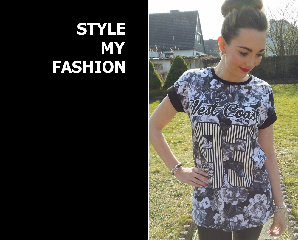 Das tolle Style-Element schwarz/hellgrau/weißes T-Shirt ist wunderbar kombiniert im Style "I put my Nike's on :)" von Regenbogenland bei Style my Fashion. Folgende Schlagworte passen dazu ganz gut: schwarz/hellgrau/weißes T-Shirt kombinieren, Freizeit, Blumen, Nummer, print, schwarzweiß, T-Shirt.
